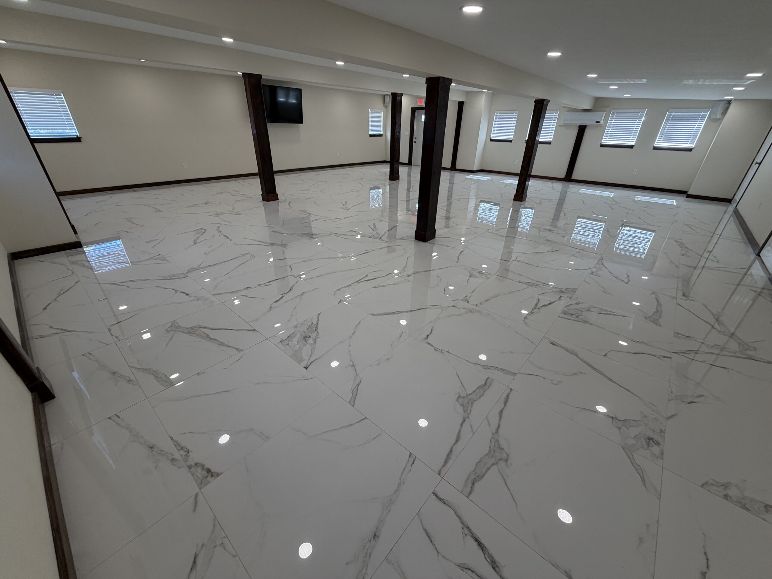 The Centennial Reception Hall serves as the cornerstone of our venue. With gleaming floors and rich stained wood accents, this multifunctional space has been intentionally designed to accommodate and host a variety of events. The spaces also adjoins a large kitchen to seamlessly accommodate caterers and food preparation.